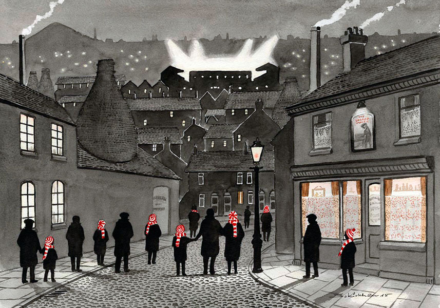 An emotive painting capturing Stoke fans' unwavering devotion to the club.